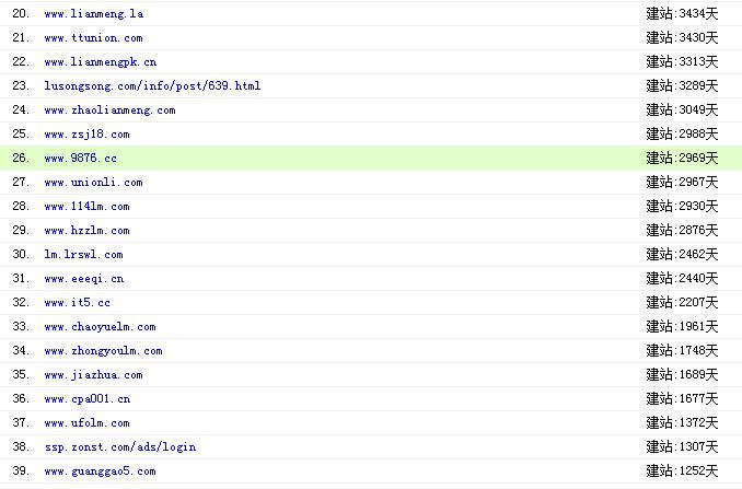 为什么是40条网址而不是50条呢?因为有的网站查询失败,部分网站打不开,所以只有40条。紧接着,复制这40条网址,百度搜索关键词“域名年龄批量查询”我用的是114link的,查询结果如下: